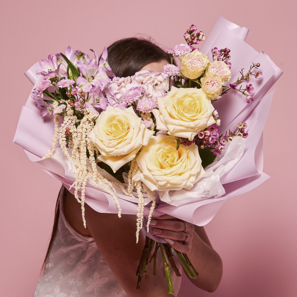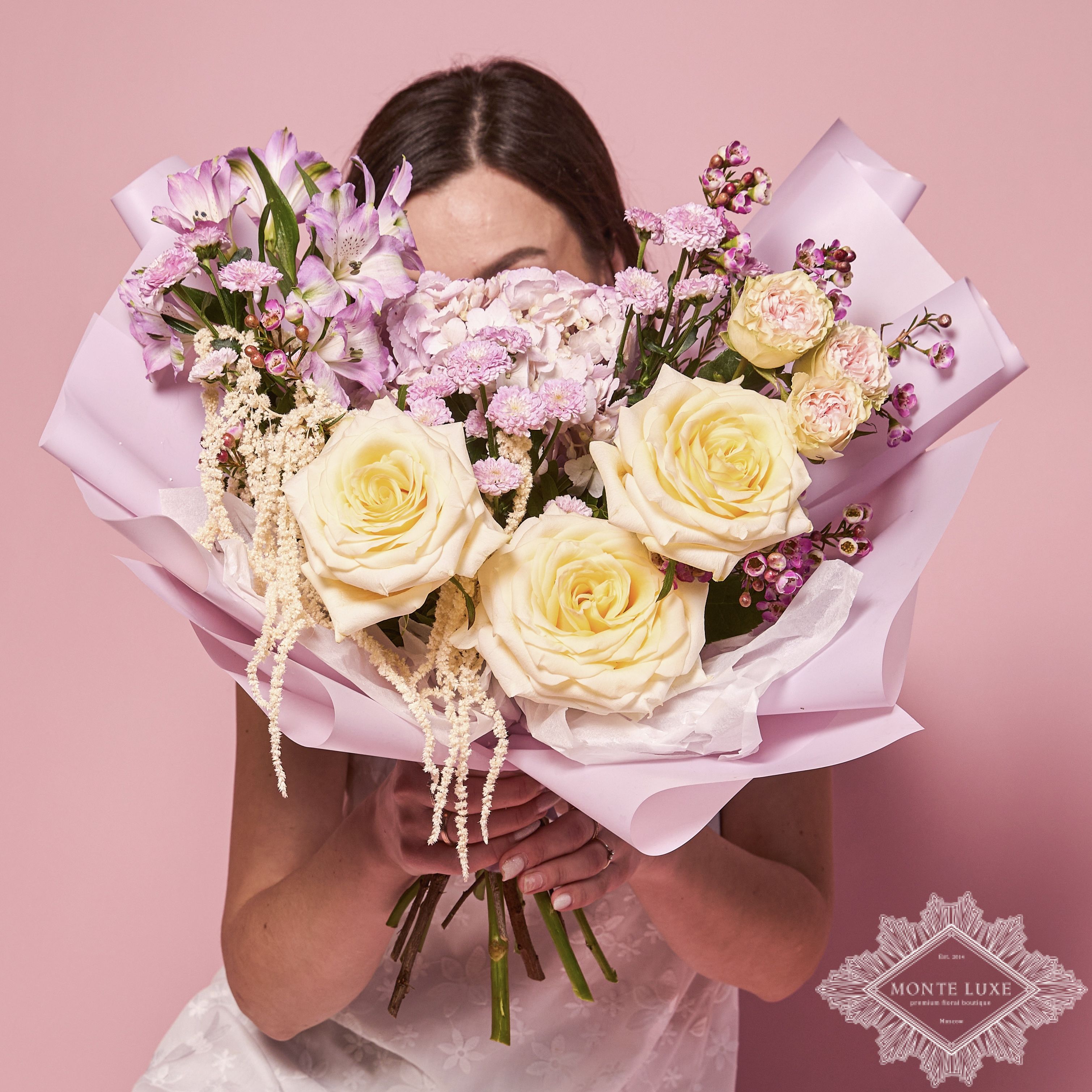 Этот букет — воплощение любви и нежности. Свежие цвета и продуманная палитра от флористов Monte Luxe создают незабываемое впечатление.