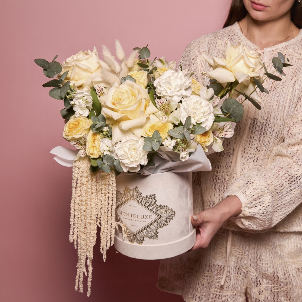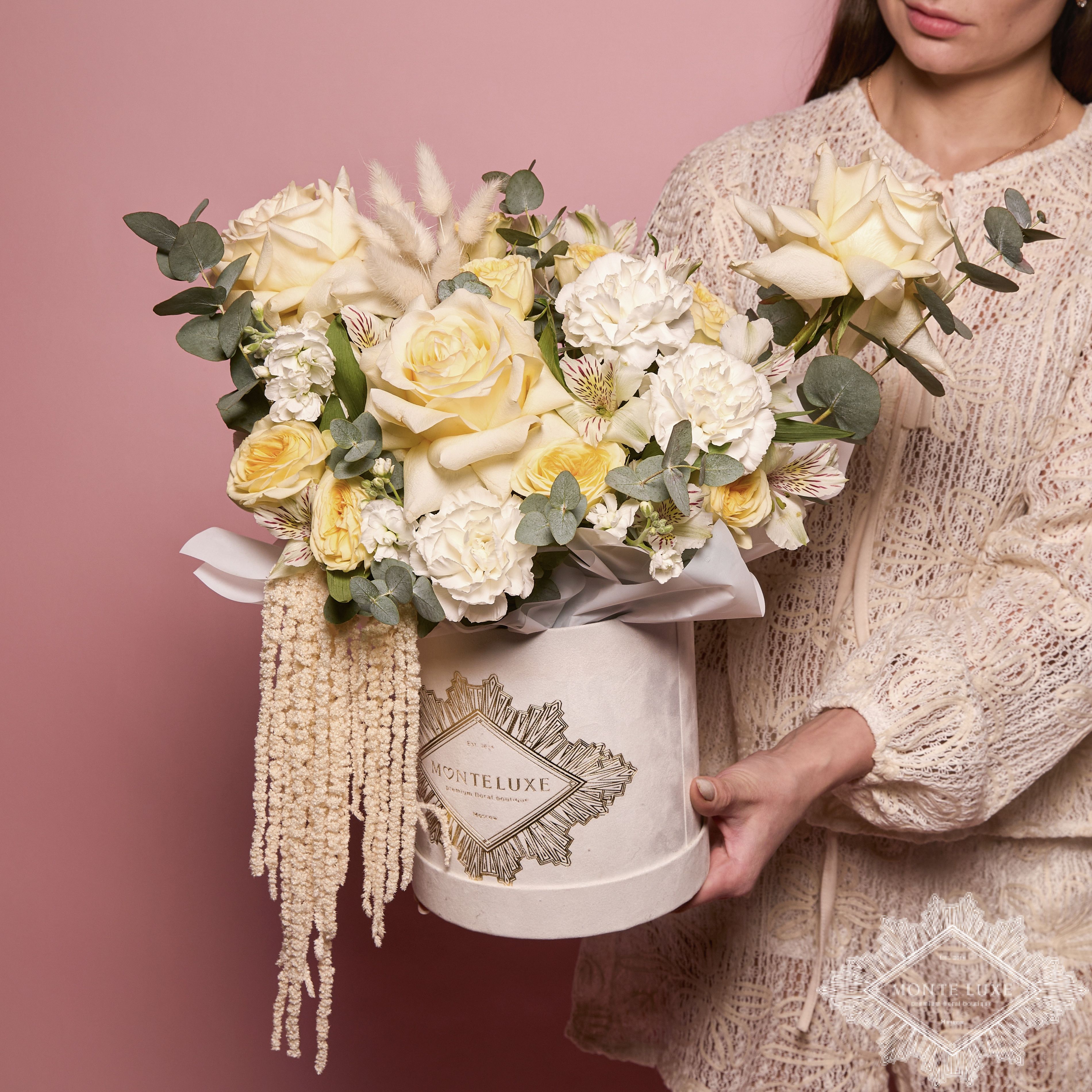 Каждая работа – это авторское видение нашего флориста с учетом Ваших пожеланий и наличия подходящих цветов самого хорошего качества. Мы сохраняем за собой право заменять некоторые цветы на идентичные им в зависимости от сезона. Цены приведены на сайте для Вашего понимания размера композиции и удобства совершения заказа.