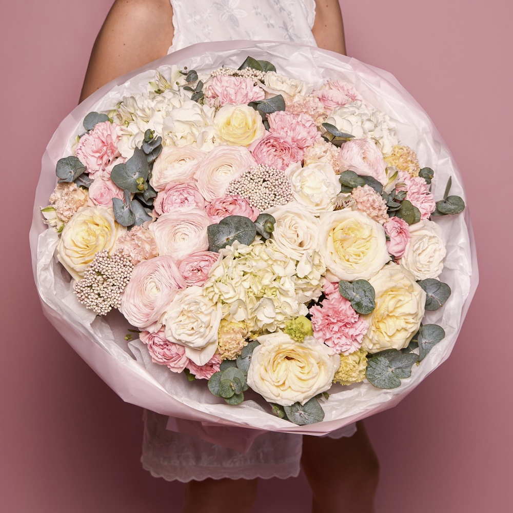 Каждая работа – это авторское видение нашего флориста с учетом Ваших пожеланий и наличия подходящих цветов самого хорошего качества. Мы сохраняем за собой право заменять некоторые цветы на идентичные им в зависимости от сезона. Цены приведены на сайте для Вашего понимания размера композиции и удобства совершения заказа.