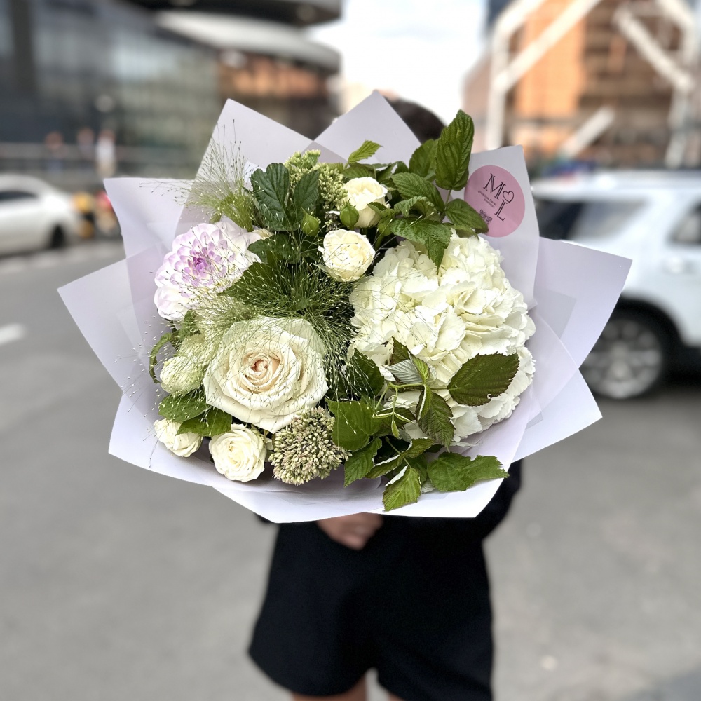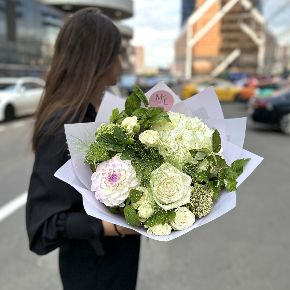 Каждая работа – это авторское видение нашего флориста с учетом Ваших пожеланий и наличия подходящих цветов самого хорошего качества. Мы сохраняем за собой право заменять некоторые цветы на идентичные им в зависимости от сезона. Цены приведены на сайте для Вашего понимания размера композиции и удобства совершения заказа.