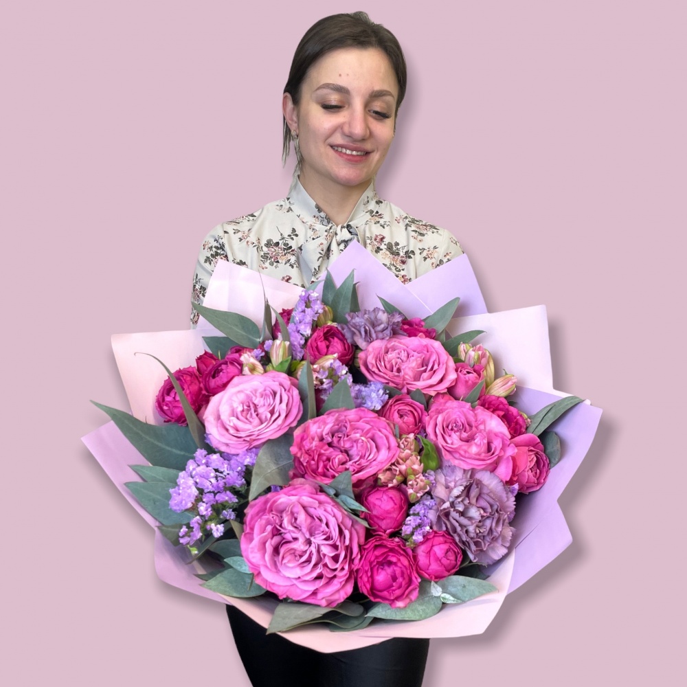 Каждая работа – это авторское видение нашего флориста с учетом Ваших пожеланий и наличия подходящих цветов самого хорошего качества. Мы сохраняем за собой право заменять некоторые цветы на идентичные им в зависимости от сезона. Цены приведены на сайте для Вашего понимания размера композиции и удобства совершения заказа.