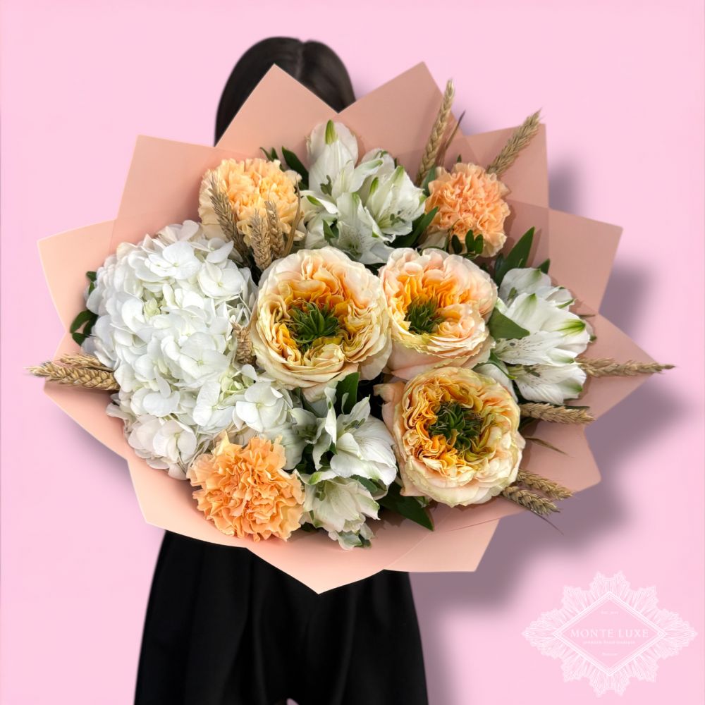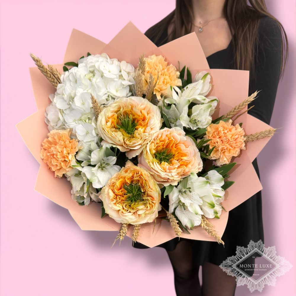 Каждая работа – это авторское видение нашего флориста с учетом Ваших пожеланий и наличия подходящих цветов самого хорошего качества. Мы сохраняем за собой право заменять некоторые цветы на идентичные им в зависимости от сезона. Цены приведены на сайте для Вашего понимания размера композиции и удобства совершения заказа.