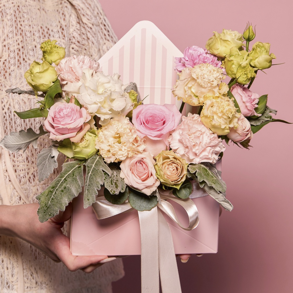 Каждая работа – это авторское видение нашего флориста с учетом Ваших пожеланий и наличия подходящих цветов самого хорошего качества. Мы сохраняем за собой право заменять некоторые цветы на идентичные им в зависимости от сезона. Цены приведены на сайте для Вашего понимания размера композиции и удобства совершения заказа.