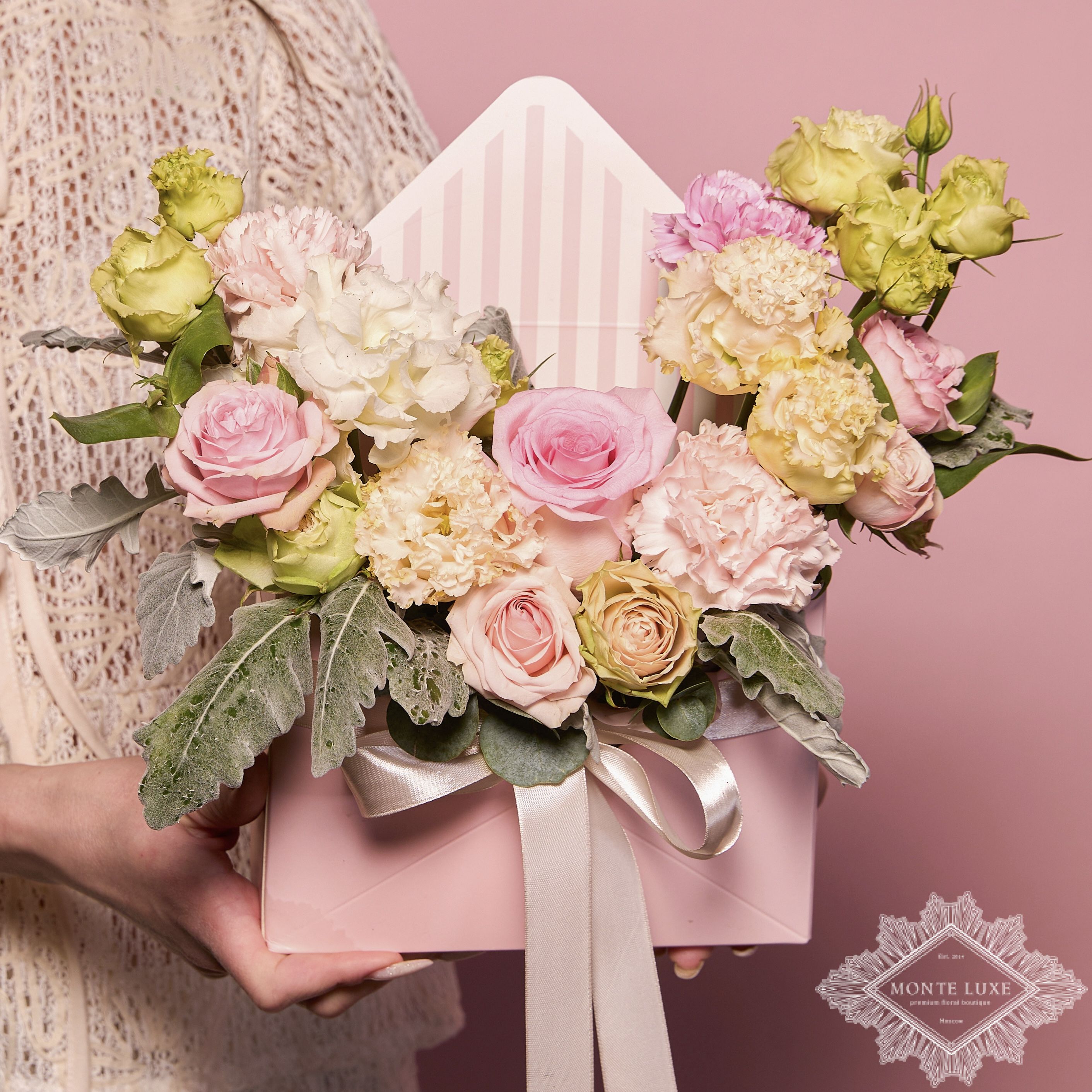 Композиция, в которую вложили много любви. Флористы студии Monte Luxe сделали ее из самых свежих цветов, тщательно продумав состав. Теперь она готова удивить красотой своего получателя!