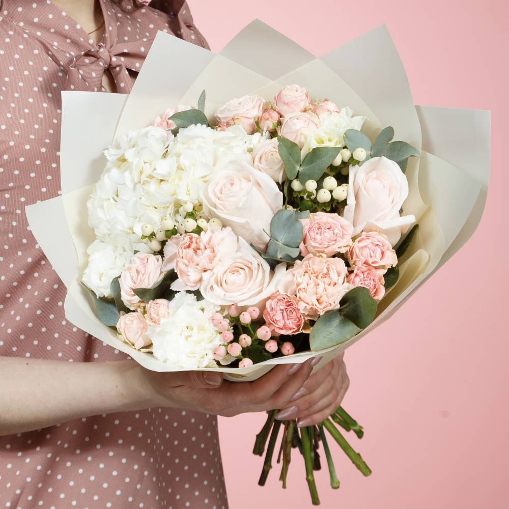 Каждая работа – это авторское видение нашего флориста с учетом Ваших пожеланий и наличия подходящих цветов самого хорошего качества. Мы сохраняем за собой право заменять некоторые цветы на идентичные им в зависимости от сезона. Цены приведены на сайте для Вашего понимания размера композиции и удобства совершения заказа.