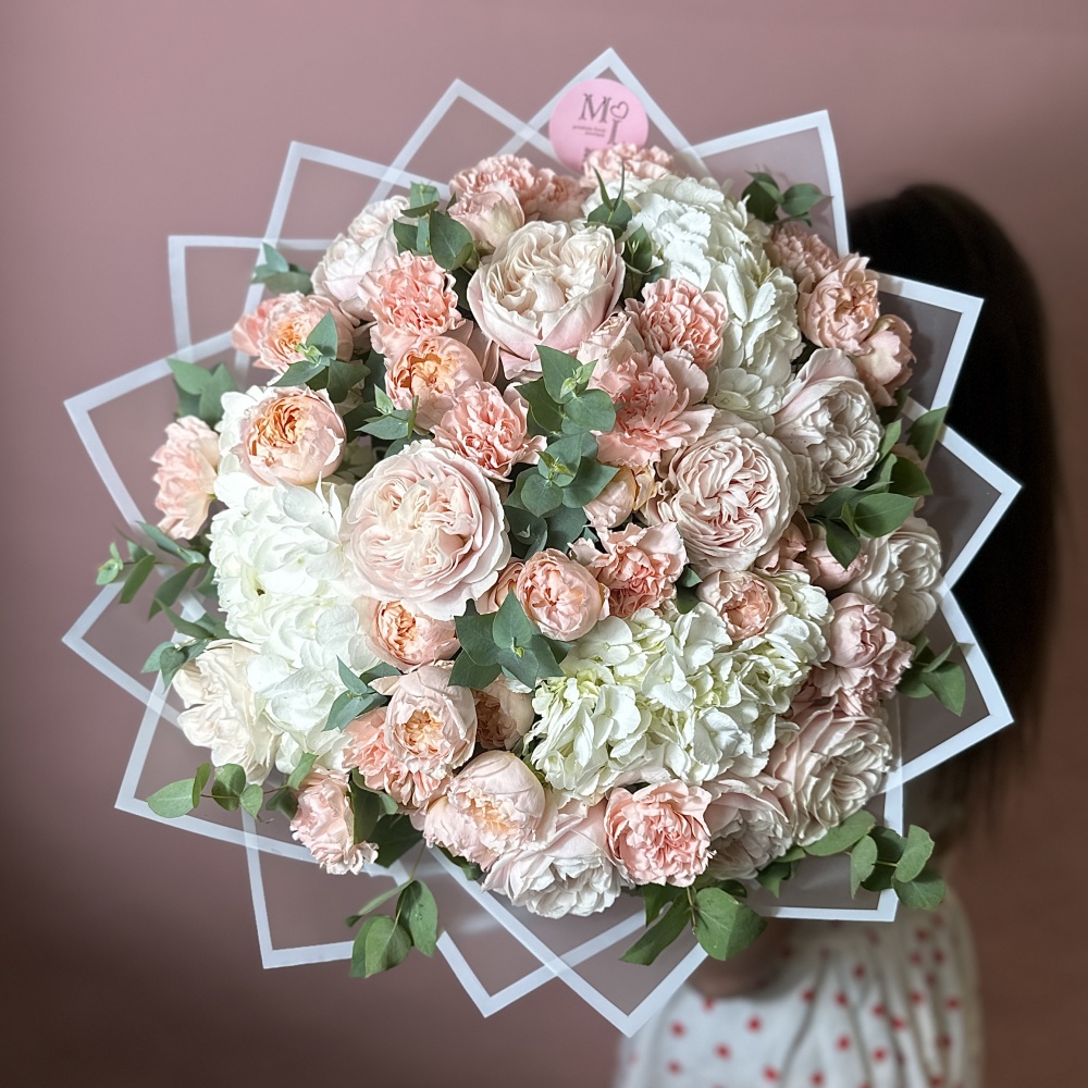 Каждая работа – это авторское видение нашего флориста с учетом Ваших пожеланий и наличия подходящих цветов самого хорошего качества. Мы сохраняем за собой право заменять некоторые цветы на идентичные им в зависимости от сезона. Цены приведены на сайте для Вашего понимания размера композиции и удобства совершения заказа.
