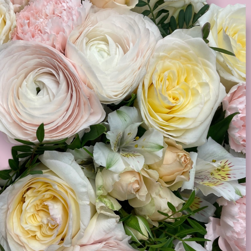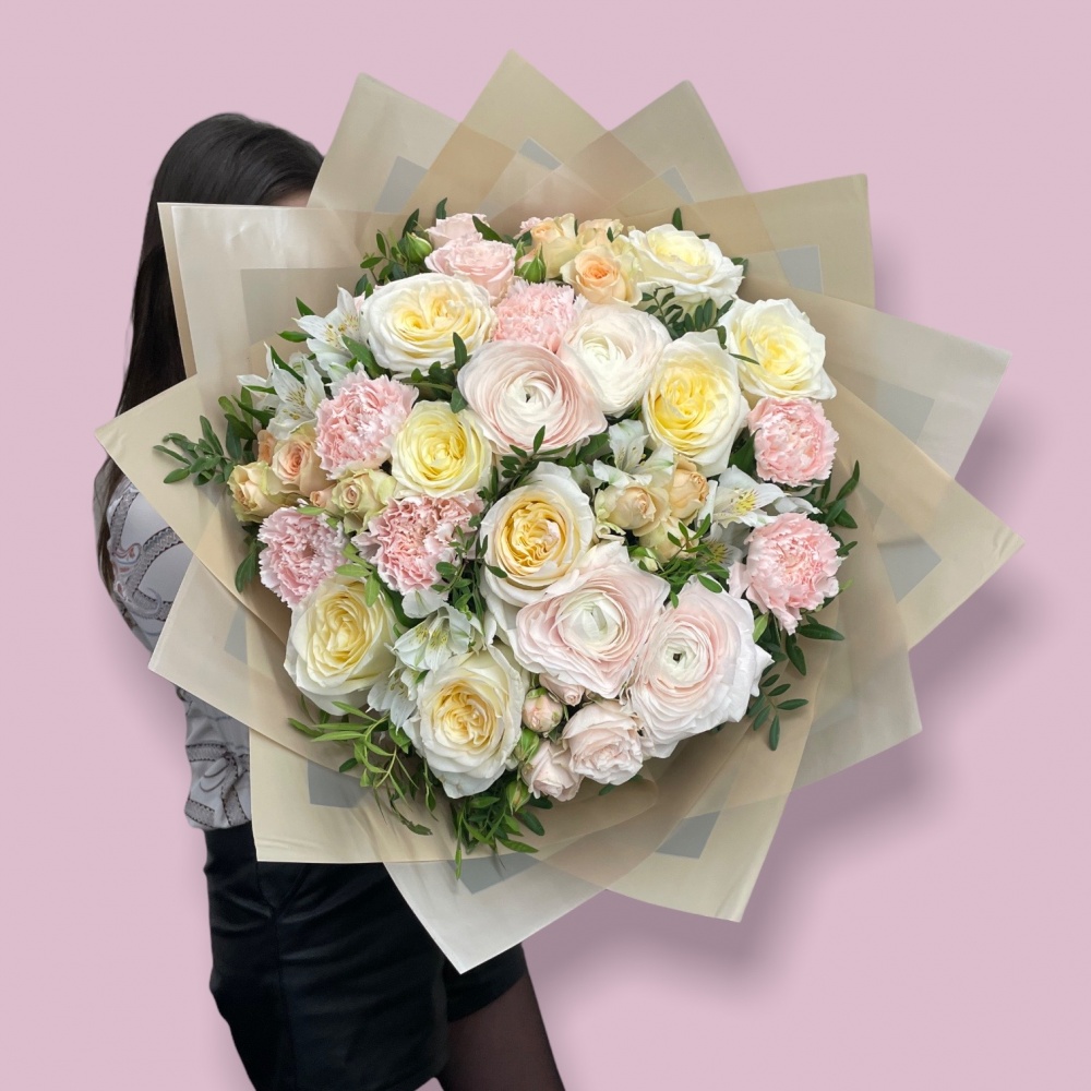 Каждая работа – это авторское видение нашего флориста с учетом Ваших пожеланий и наличия подходящих цветов самого хорошего качества. Мы сохраняем за собой право заменять некоторые цветы на идентичные им в зависимости от сезона. Цены приведены на сайте для Вашего понимания размера композиции и удобства совершения заказа.