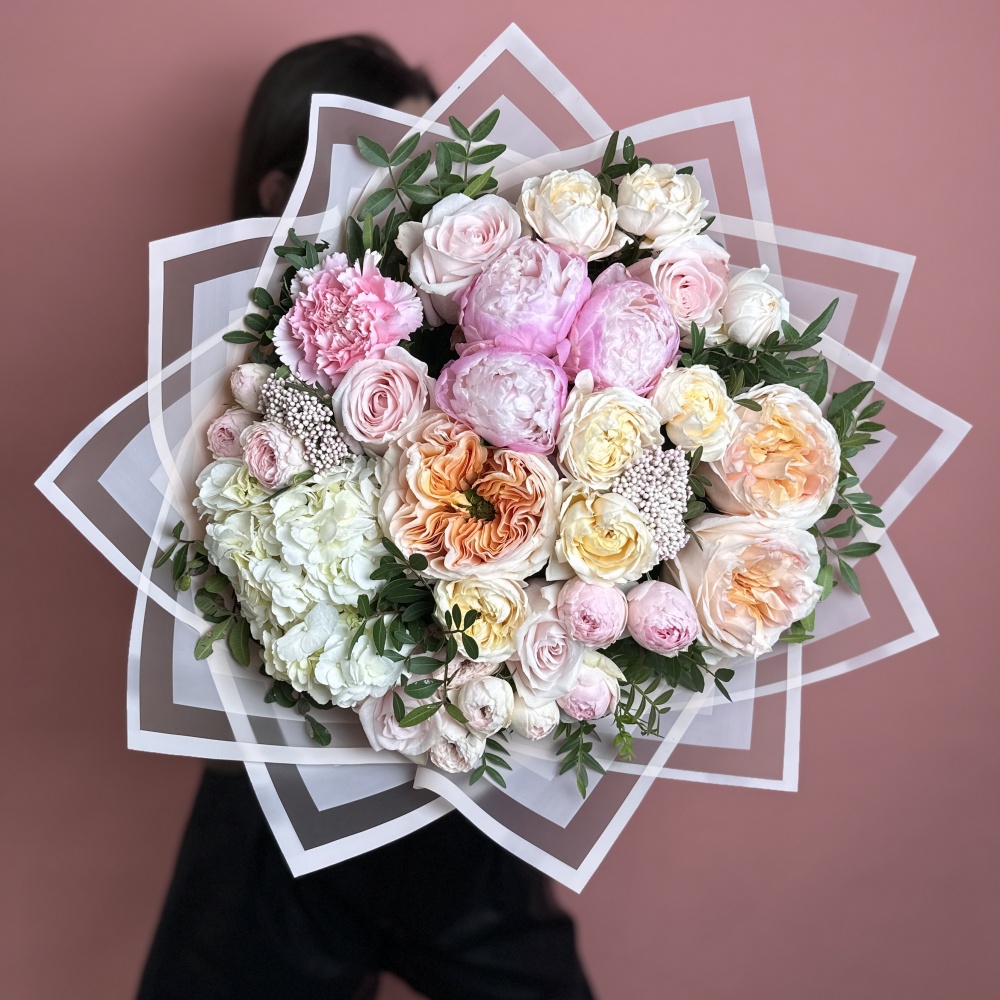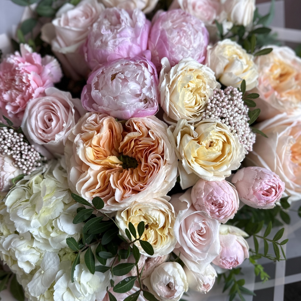 Каждая работа – это авторское видение нашего флориста с учетом Ваших пожеланий и наличия подходящих цветов самого хорошего качества. Мы сохраняем за собой право заменять некоторые цветы на идентичные им в зависимости от сезона. Цены приведены на сайте для Вашего понимания размера композиции и удобства совершения заказа.