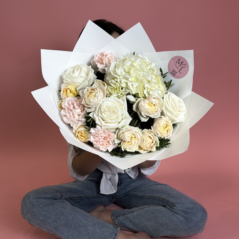 Каждая работа – это авторское видение нашего флориста с учетом Ваших пожеланий и наличия подходящих цветов самого хорошего качества. Мы сохраняем за собой право заменять некоторые цветы на идентичные им в зависимости от сезона. Цены приведены на сайте для Вашего понимания размера композиции и удобства совершения заказа.