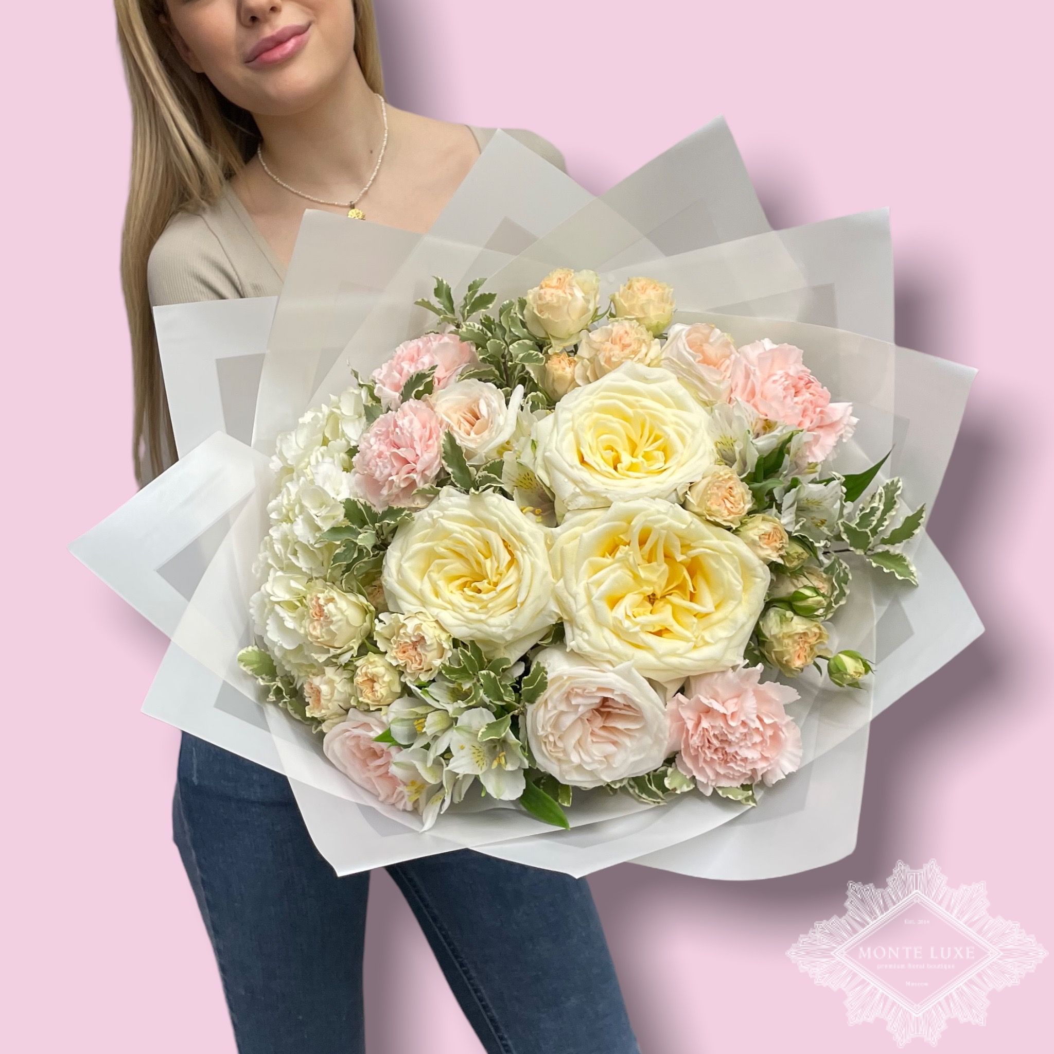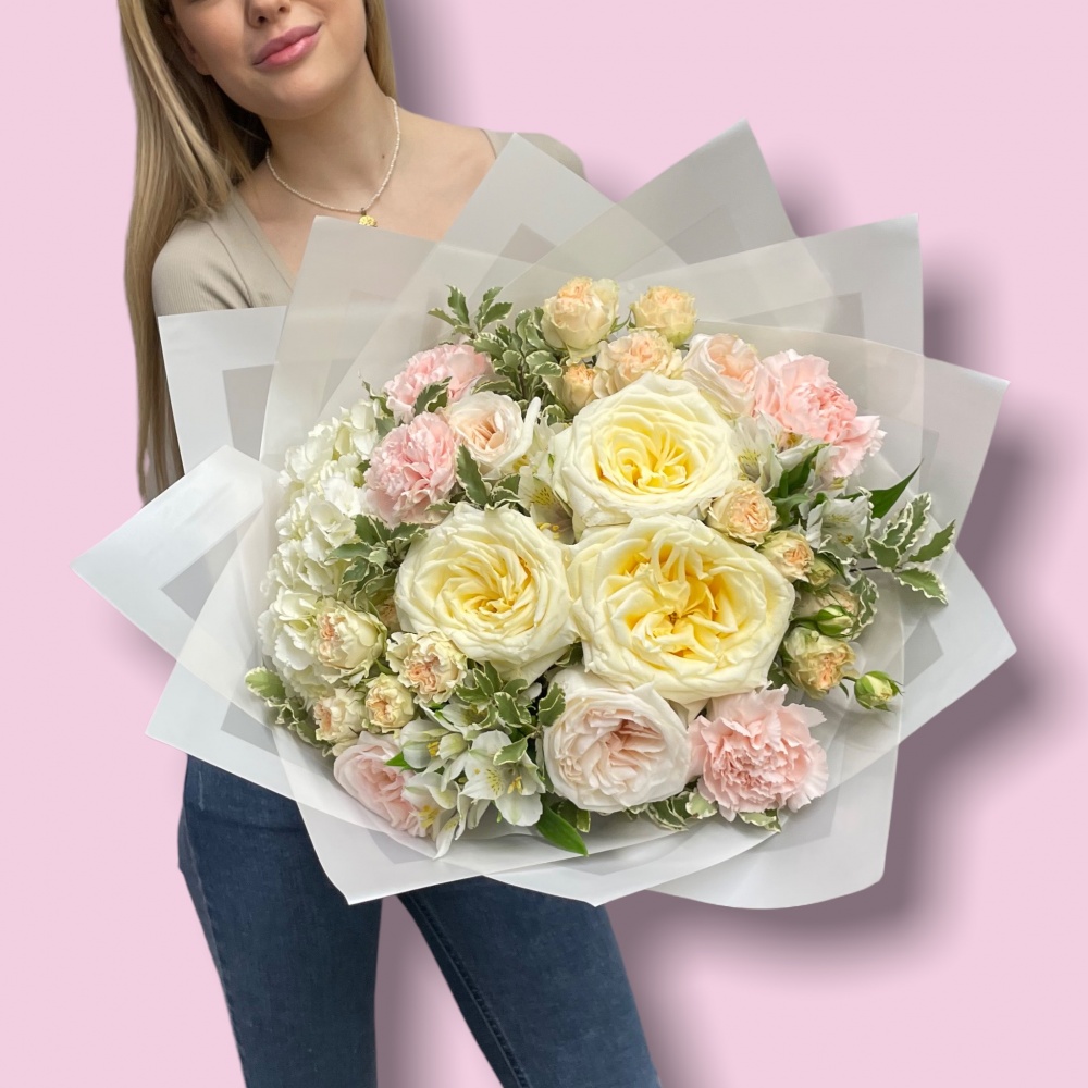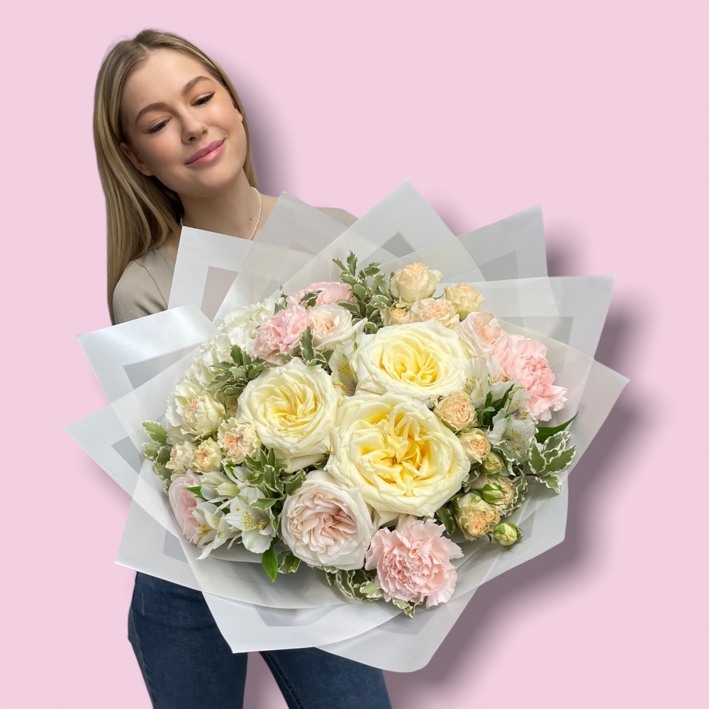 Каждая работа – это авторское видение нашего флориста с учетом Ваших пожеланий и наличия подходящих цветов самого хорошего качества. Мы сохраняем за собой право заменять некоторые цветы на идентичные им в зависимости от сезона. Цены приведены на сайте для Вашего понимания размера композиции и удобства совершения заказа.