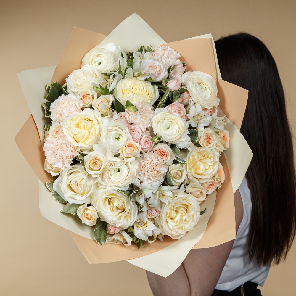 Каждая работа – это авторское видение нашего флориста с учетом Ваших пожеланий и наличия подходящих цветов самого хорошего качества. Мы сохраняем за собой право заменять некоторые цветы на идентичные им в зависимости от сезона. Цены приведены на сайте для Вашего понимания размера композиции и удобства совершения заказа.